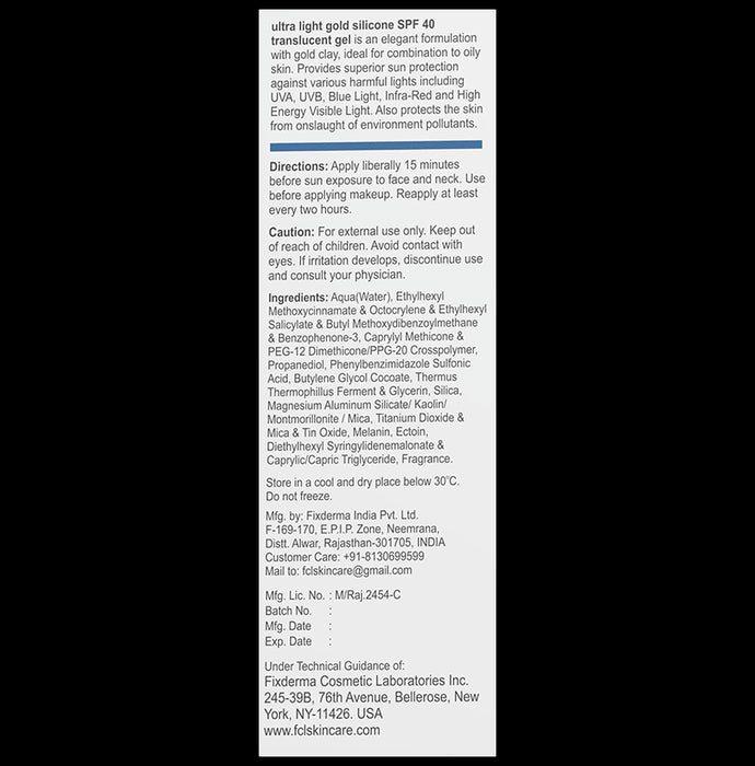 Fixderma FCL Ultra light Gold Silicon Translucent Gel SPF 40