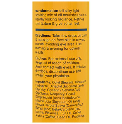 Fixderma Transformation Oil helps to hydrate dry and dull skin while also enhancing skin health. It contains amino acids, which aid in the immune system's strengthening, as well as the skin's moisture, resilience, and general attractiveness. It also protects skin from free radical damage, reduces fine lines and wrinkles, and slows down the ageing process.