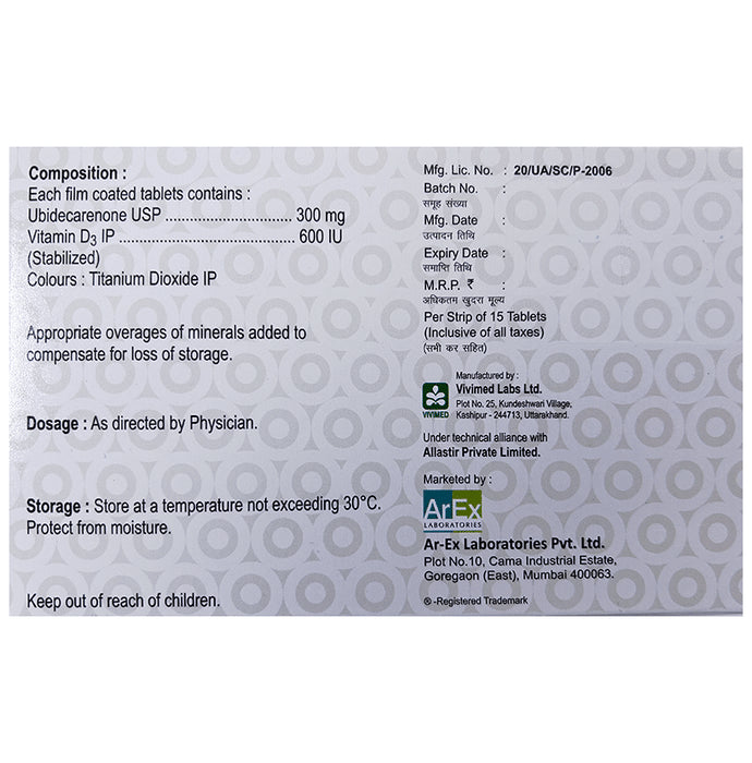 Composition : Ubidecarenone USP,Vitamin D3 IP (Stabilised)