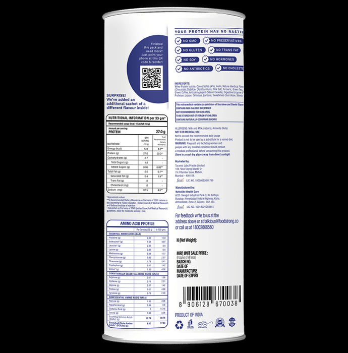 Foodstrong Shape Shake Chocolate Smoothie Lite contains natural whey isolates, low carb and low fat. Ideal for those looking to tone-up. It comes with 15 +1 single-serve sachets which require no measuring, no weighing, just rip, mix and enjoy. Every sachet of Shape Shake gives you a full 27 grams of protein, has less than 120 calories and less than 4 g of net carbs.