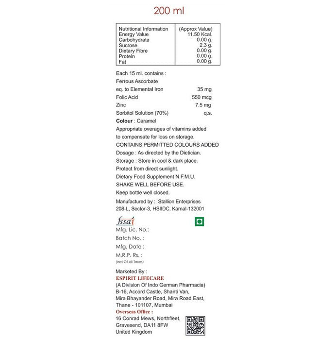 Composition : Vitamin B9,Ferrous ascorbate,Zinc