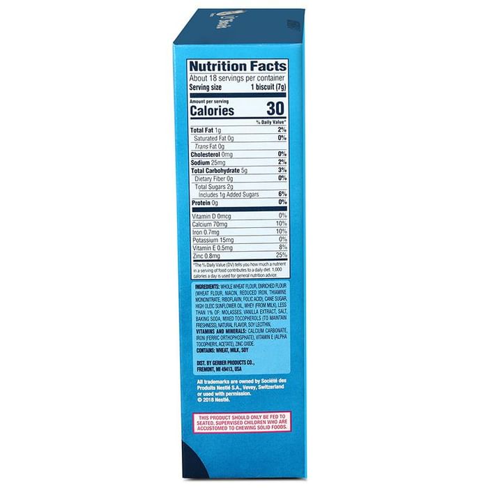 Gerber Lil' Biscuits Toddler 12+ Months help nourish the little one with the goodness of Gerber Lil' Biscuits. Our yummy Vanilla Wheat Lil' Biscuits are made with 2 grams of whole grains per serving and 3 essential minerals: calcium, iron and zinc. No high fructose corn syrup, artificial flavors, artificial colors or artificial sweeteners. Gerber Lil' Biscuits - a perfect combination of the delicious taste little ones love and the wholesome nutrition parents love.