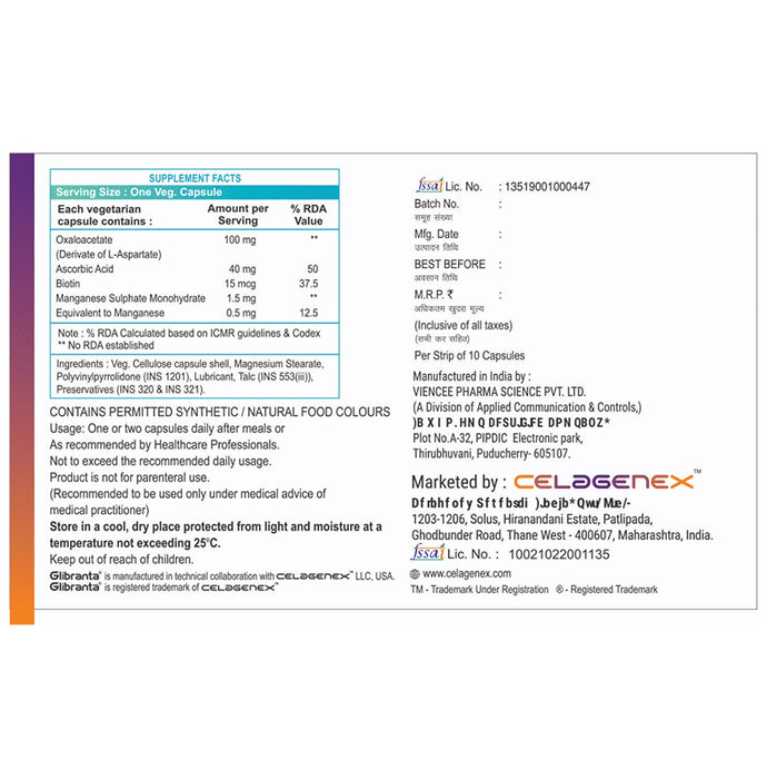 Composition : Oxaloacetate,Ascorbic Acid,Biotin,Manganese Sulphate Monohydrate