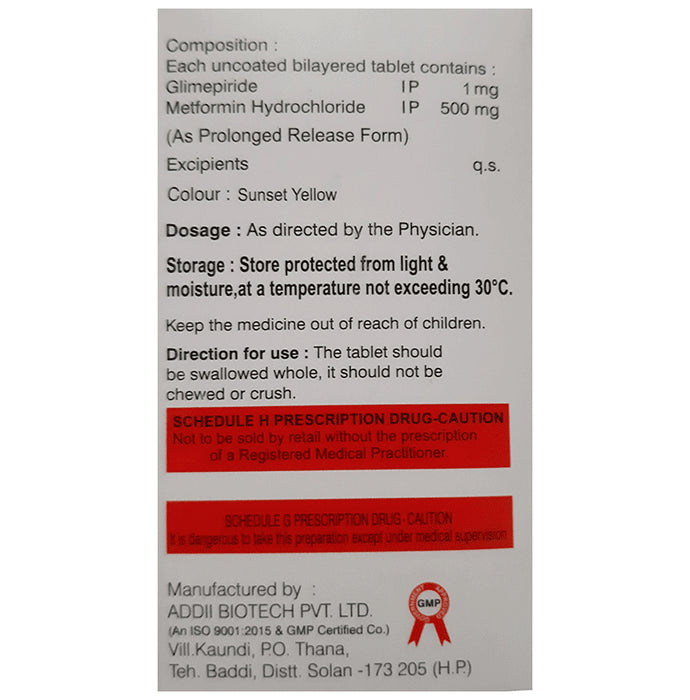 Composition : Glimepiride (1mg) + Metformin (500mg)