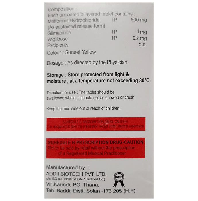 Composition : Glimepiride (1mg) + Metformin (500mg) + Voglibose (0.2mg)