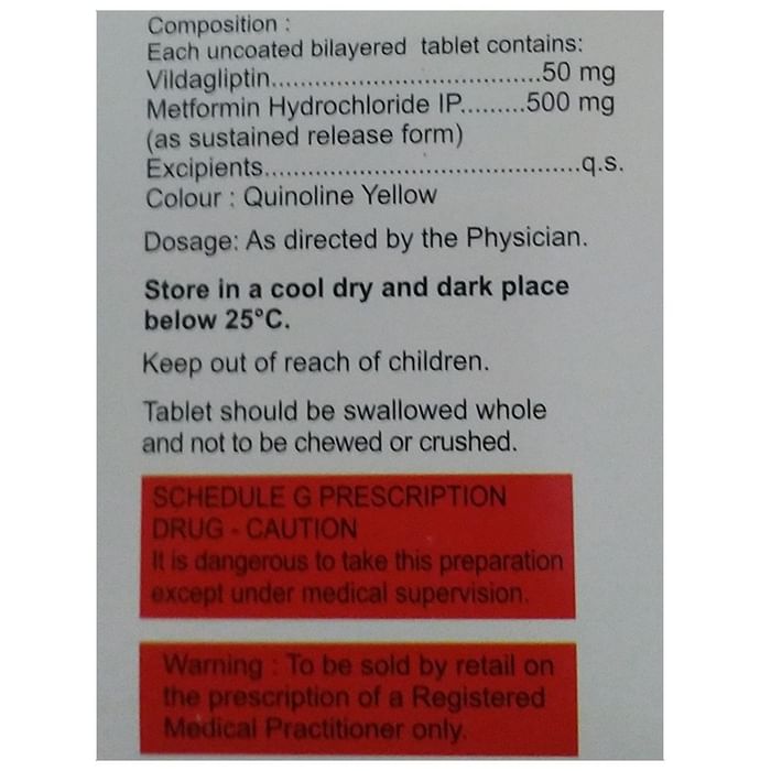 Composition : Metformin (500mg) + Vildagliptin (50mg)