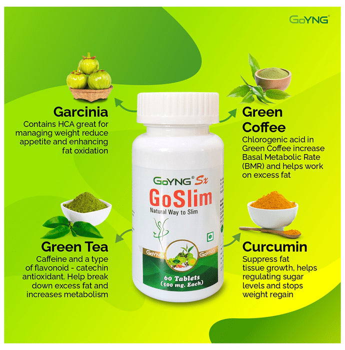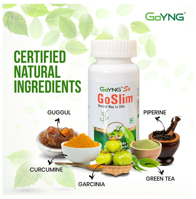 GoYNG Sx Go Slim Tablet is a natural appetite suppressant which may regulate food craving and controls appetite. It can enhance the metabolic rate and help burn fats and lipids inside the body. It can inhibit the synthesis of fatty acids in the muscles and liver and thus arrests lipogenesis. These tablets can boost metabolism to burn fat. It can give an anti-ageing effect and improves energy level. It is enriched with piperine for enhanced absorption and better bioavailability. It can help you maximize fat-burning efforts and tone up your body faster. It is all-natural, safe and contains authentic ingredients. It is a certified formulation and is certified by CMIRD, manufactured in a GMP-certified factory, and ISO certified. It is a natural supplement with no side effects. It does not contain sugar and is safe for all.