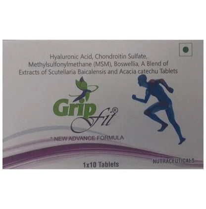 Grip Fit Tablet is a comprehensive joint health supplement formulated to promote flexibility and mobility. This powerful blend combines glucosamine sulphate potassium, rose hip extract, collagen peptide, MSM, and diacerein, providing a synergistic approach to support joint function. This powerful supplement is designed to enhance joint flexibility, reduce discomfort, and promote overall joint well-being. Ingredients: Glucosamine Sulphate Potassium, Rose Hip Extract, Collagen Peptide, MSM, Diacerein, Starch, Talcum, Ethyl Cellulose, Titanium Dioxide, HPMC, PVC K 30 Benefits: Glucosamine is a naturally occurring chemical found in the human body, important for making glycosaminoglycans and proteoglycans|Glucosamine assists in the healthy development of collagen around joints all over the body. It is also essential in maintaining elasticity and strength in the articular joints|Diacerein is a slow-acting formula of the class anthraquinone which helps reduce the risk of joint issues such as osteoarthritis (swelling and pain in the joints)|Methylsulfonylmethane is necessary for collagen synthesis, and helps reduce inflammation and pain|Collagen peptides are useful for various bone and joint pains as they act as building blocks of various connective tissues like skin, bones, cartilage, teeth, tendons etc. It also supports healthy skin, better digestion, and balanced hormonal release in the body|Rosehip extract contains polyphenols and anthocyanins, which help ease joint inflammation and prevent joint damage Direction of use: Take 1-2 tablets daily or as directed by the physician Uses: Assists in the healthy development of collagen|Helps reduce the risk of various joint disorders|Useful for various bone and joint pains|Helps ease joint inflammation