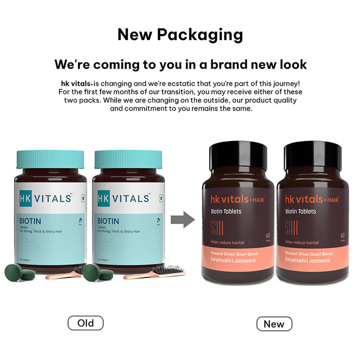HealthKart HK Vitals Biotin is a Vitamin B7 dietary supplement that assures your body of the required dosage of Vitamin B7 which is essential for keratin synthesis and building keratin infrastructure in your body. Keratins help form the tissues of the hair, nails, and the outer layer of the skin, hence HK Vitals Biotin ensures enriching care for hair, skin and nail. Biotin also helps to provide radiance to the skin and fight nail brittleness so that they don't break easily. It metabolises fats and protein to provide energy and fight fatigue.