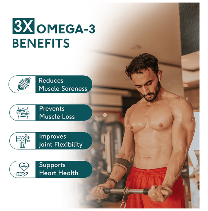 HealthKart HK Vitals Triple Strength Fish Oil Soft Gelatin CapsuleOmega 3 fatty acids are critical in maintaining the health of the brain, heart, eyes, and joints. These diets contain less omega 3 including DHA and EPA, and high Omega-6 which results in an unhealthy ratio of Omega 6/Omega 3 in the body. This unhealthy ratio may affect overall health. Thus, omega-3 supplements can help maintain an adequate balance of omega-3 fatty acids.HealthKart HK Vitals Triple Strength Fish Oil with 1250 mg fish oil is a potent formula with 3X omega 3 from 560 mg EPA and 400 mg DHA which can be readily absorbed by our body. Regular usage of HK Vitals Triple Strength Fish Oil can help with better performance with faster muscle recovery and reduced muscle soreness. Omega 3 fatty acids may help control joint pain, stiffness and tenderness and promote joint flexibility and mobility. They also help enhance brain and eye health. This fish oil is extracted from cold-water fish and is ultra-purified, which makes it free of heavy metals with non-GMO ingredients that are safe for everyday use.