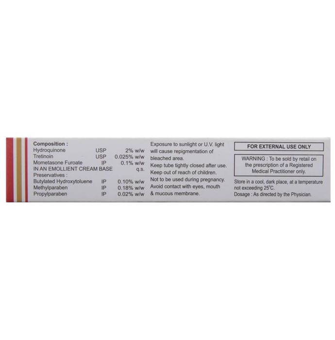 Composition : Hydroquinone (2% w/w) + Mometasone (0.1% w/w) + Tretinoin (0.025% w/w)