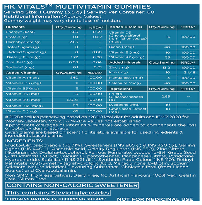 HK Vitals Multivitamin & Minerals | Vegetarian Gummies for Immunity, Strength & Stamina | Flavour Orange