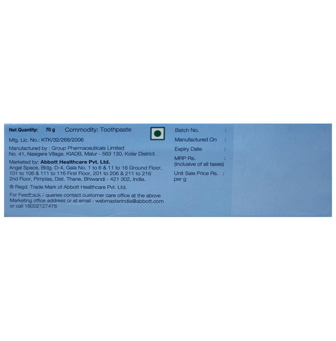Composition : Glycerine, Peg 400, Silica, Fluoro calcium phospho silicate, Sodium lauryl sulphate, Titanium dioxide, Aroma, Carbomer, Potassium acesulfame