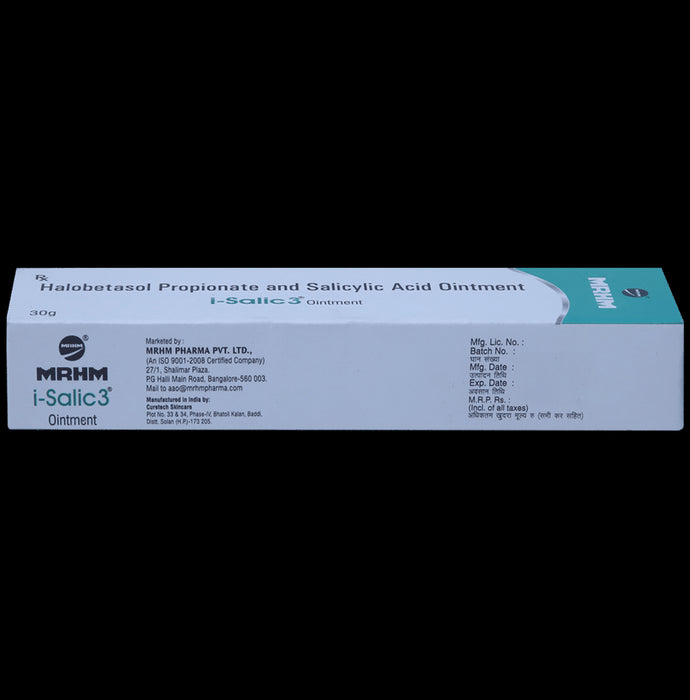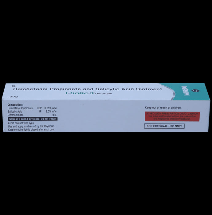 I Salic 3 Ointment is a combination medicine that is used to treat eczema and psoriasis. It provides relief from redness, itching and swelling. It helps in softening the skin. I Salic 3 Ointment should be used in the dose and duration as advised by your doctor. Wash your hands before using this medicine. It is advised to check the label for directions before use. It is for external use only.Do not use this medicine more than the recommended dose. Inform your doctor if you have known allergies from this medicine. The common side effects of this medicine include thinning of the skin, dry skin, burning, irritation, itchiness, and redness at the application site.If these side effects or any other symptoms which you think are because of this medicine persist for a longer duration, please consult your doctor. Inform your doctor if you are pregnant or are suffering from any other disease. This medicine is safe to use in breastfeeding mothers.