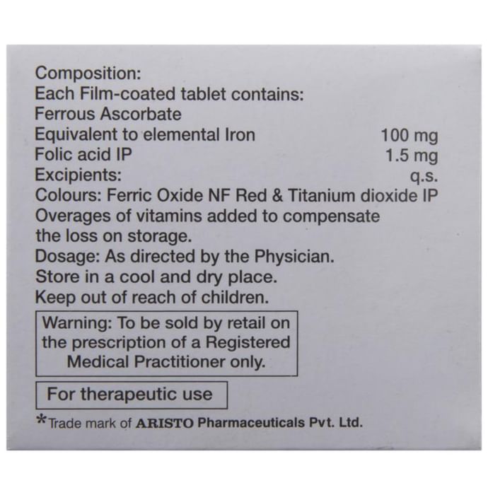 Composition : Ferrous Ascorbate (100mg) + Folic Acid (1.5mg)
