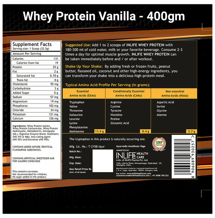 Inlife Whey Protein Powder | With Digestive Enzymes for Muscle Growth | Flavour Vanilla
