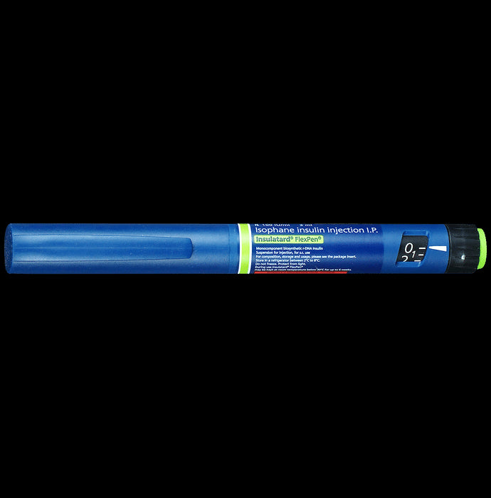 Insulatard 100IU/ml Flexpen is used to improve blood sugar control in adults and children with type 1 and type 2 diabetes mellitus. It is an intermediate-acting type of insulin that helps to lower blood sugar levels and reduce the chances of developing serious complications of diabetes. Insulatard 100IU/ml Flexpen is often prescribed along with short-acting insulin or other oral diabetes medicines. Your doctor or nurse will teach you the correct way of injecting it under the skin. Don’t stop taking it unless your doctor tells you to. It is only part of a treatment program that should also include a healthy diet, regular exercise, and weight reduction as advised by your doctor.Check your blood sugar levels regularly, keep track of your results and share them with your doctor. This is very important to work out the correct dose of the medicine for you.The most common side effect of this medicine is low blood sugar levels (hypoglycemia). To prevent this, it's important to always inject the correct dose of medicine only, have regular meals, and monitor your blood sugar levels regularly. Drinking excessive alcohol can also lead to a fall in your blood sugar levels. Other side effects include reactions at the injection site like redness or swelling. Repeated puncturing of the same site of the skin may lead to lipodystrophy (skin thickening or pits at the injection site). Some people may gain weight or develop edema (swelling over the whole body due to fluid retention) while taking insulin.Do not use this medicine when you have low blood glucose levels (hypoglycemia). Tell your doctor if you have ever had kidney, liver or heart problems before starting treatment. Pregnant or breastfeeding women should also consult their doctor as the dose may need to be changed.