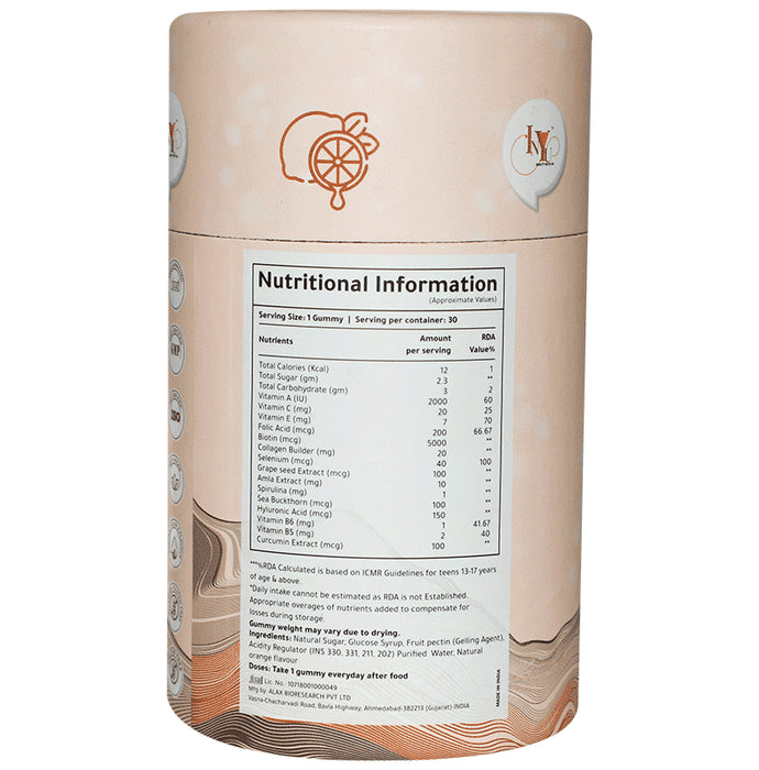 Composition : Collagen Builder,Vitamin C,Vitamin E,Curcumin Extract,Hyaluronic Acid,Biotin