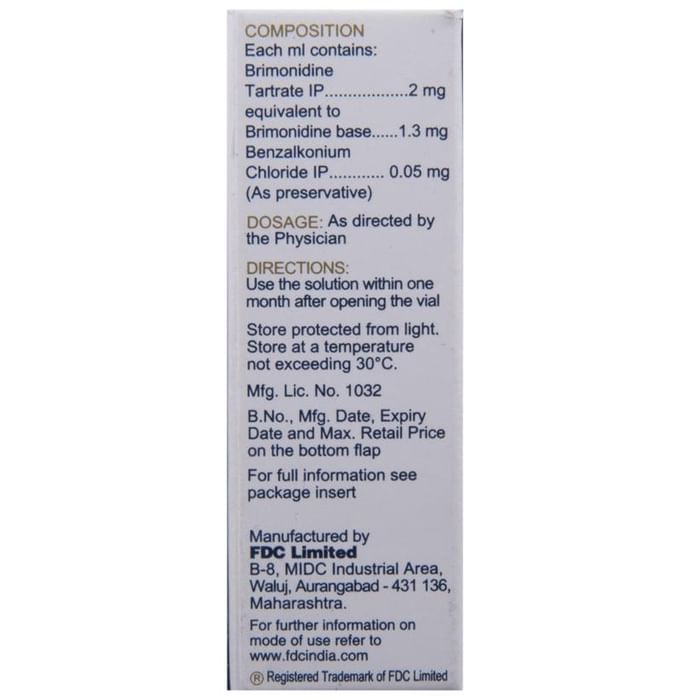 Iobrim Eye Drop is used in the treatment of ocular hypertension (pressure in the eye) and glaucoma. It helps to lower high pressure in the eye and reduces the risk of vision loss. This medicine may be used alone or in combination with another eye drop that reduces pressure in the eye. Iobrim Eye Drop is for external use only. Use it in the dose and duration as advised by the doctor. If you wear contact lenses, remove them before using the medication. Avoid touching the tip of the dropper to any surface as it may contaminate the eye drop. For best results, use it daily in the evening or at night.The common side effects include allergic conjunctivitis, burning sensation, conjunctival inflammation, conjunctival hyperemia, eye itching, high blood pressure, allergic reaction in the eyes, dry mouth, and visual disturbance. If they persist or worsen, inform your doctor.  If these side effects persist for a longer duration, please inform your doctor. Caution is advised for driving after administration of this injection if your eyes are not able to concentrate and react.