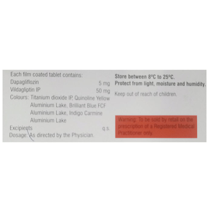 Composition : Dapagliflozin (5mg) + Vildagliptin (50mg)