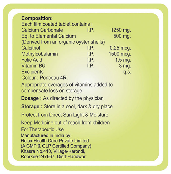 Composition : Calcium carbonate,Calcitriol,Folic acid,Vitamin B6,Methylcobalamin