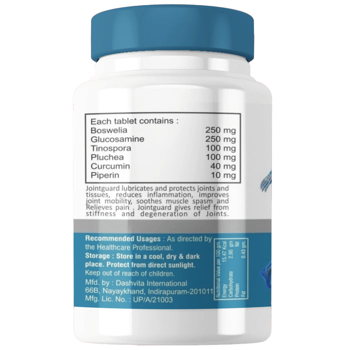 Joint Guard TabletJointguard tablet lubricates and protects joints and tissues, reduces inflammation, improves joint mobility, soothes muscle spasms and relieves pain. Jointguard tablet gives relief from stiffness and degeneration of joints. It helps manage pains, including rheumatism, arthritis, osteoarthritis, gout, body ache, muscular pain, lumber and cervical pain.