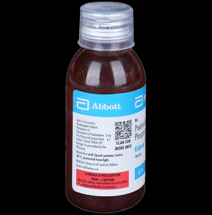 Kidpred Syrup belongs to a class of medicines called steroids. It helps treat certain types of allergies, inflammatory conditions, autoimmune disorders, hormonal disorders, and even cancer in children. It is also the treatment of choice after organ transplantation and for Nephrotic syndrome in children. Give Kidpred Syrup to your child with food. The usually prescribed frequency is once daily, preferably in the morning after breakfast. The dose of this medication will depend on your child’s clinical condition, body weight, age, and treatment response. Use Kidpred Syrup only for the recommended duration of time. Do not prolong its use, more than recommended as that may lead to increased side effects. Also, do not stop giving this medicine suddenly. Sudden withdrawal may affect the ongoing treatment and the child may exhibit withdrawal symptoms such as dizziness, vomiting, and thirst. The dose needs to be gradually reduced before stopping it completely. If your child vomits within 30 minutes of taking Kidpred Syrup, let the child calm down, and then give the same dose again.The most common side effects associated with the use of Kidpred Syrup include increased appetite, weight gain, increased blood pressure, and behavioral and mood changes. Many of these usually go away once the treatment is stopped. However, in case these persist or start bothering your child, consult your child’s doctor without any delay. Taking Kidpred Syrup can also make it harder for your child to fight off infections. Tell the doctor if your child shows any signs of infection such as fever or sore throat.Never practice self-medication, always consult your child’s doctor for advice. Your child’s doctor must be aware of your child’s entire medical history, including any previous episode of allergy, heart problem, liver impairment, and kidney malfunction. Having an insight into your child’s overall health will help. This will guide the doctor in planning your child’s overall treatment.
