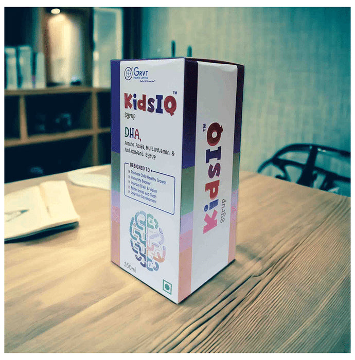 Kidsiq Syrup Kids iq syrup is a dietary supplement formulated with DHA (algae), multivitamins, amino acids, and antioxidants designed to promote child healthy growth. It little helps in cognitive development. A baby’s brain more than doubles in size during the first years of life. DHA is the primary building block of brain tissue. Adequate intake of DHA is essential for proper brain development and remains necessary throughout life to maintain brain health.