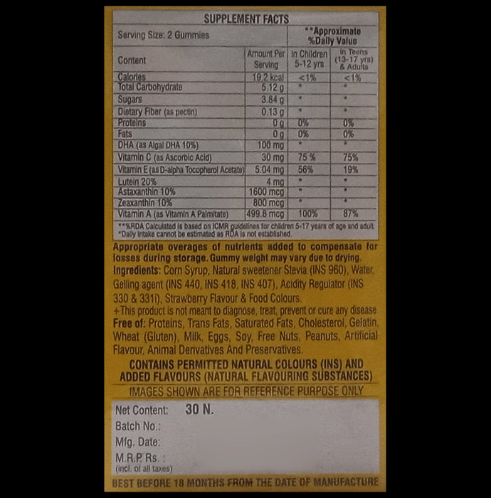 Composition : DHA,Lutein,Zeaxanthin,Vitamin A, E, and C