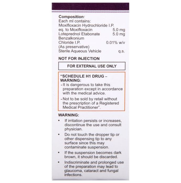 Composition : Loteprednol etabonate (0.5% w/v) + Moxifloxacin (0.5% w/v)
