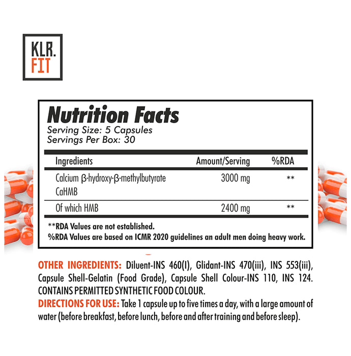 KLR. FIT HMB 3000 Capsule contains beta-hydroxy-beta-methylbutyrate, a metabolite of the branch chain amino acid Leucine. It is considered an essential amino acid required for muscle growth. HMB works by increasing the recovery times of damaged muscle tissues. It can benefit individuals new to exercise because their muscles are more prone to damage compared to advanced lifters.