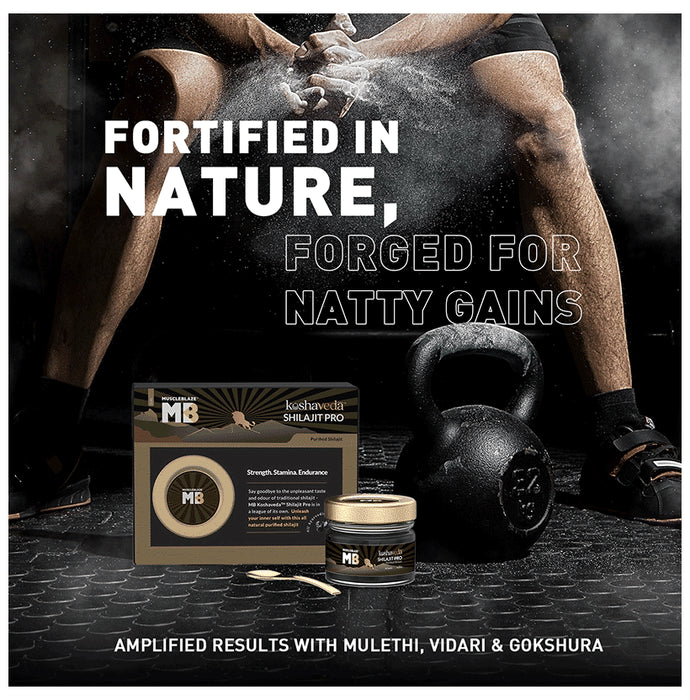 Koshaveda Shilajit Resin Pro by Muscle Blaze a health supplement meticulously crafted to harness the potent benefits of Shilajit, a natural substance rich in minerals and organic compounds. This unique formulation is designed to support overall well-being, energy levels, and vitality.