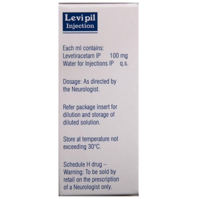 Levipil Injection is an anti-epileptic medicine used to treat seizures (fits) in epilepsy. It can be used alone or along with other medicines. It helps to prevent seizures for as long as you continue to take it. Levipil Injection is given as an infusion (slow drip) into a vein under the supervision of a healthcare professional. It is generally used for short-term control of seizures when treatment with oral medication is not feasible (eg. when the patient is unconscious). You should continue taking it for as long as your doctor has told you to, even if you feel well. If you stop or miss doses your seizures could get worse. Your doctor is likely to prescribe you oral medicines for long-term seizure control, after treatment with this injection has been completed.Some common side effects of this medicine include dizziness, headache, infection, irritation, nasopharyngitis, sleepiness, aggressive behavior, and decreased appetite. You may also experience behavioral changes, aggressive behavior, irritation, agitation, etc. Side effects are more common during the first few days and usually lessen as your body gets used to the medicine. Most of these side effects do not need medical attention, but some of them can be serious. Let your doctor know right away if you have developed an allergic reaction (hives, itching, weakness, dizziness, difficulty in breathing, or swelling of face, tongue, and throat), a skin rash, or persistent behavioral changes like confusion, forgetfulness, feeling irritable, increased aggression or hostility. There may be ways of preventing or reducing them. A small number of people being treated with this medicine have had thoughts of harming or killing themselves. Contact your doctor if your mood changes for the worse.Before taking it, you should tell your doctor if you have kidney problems, depression or suicidal thoughts and if you are pregnant or planning to become pregnant. Avoid alcohol while taking this medicine, as it may increase the risk of seizures and worsen the side effects such as drowsiness and dizziness. Drowsiness and dizziness may affect your ability to drive or operate machinery. Your kidney function may need to be tested periodically while taking this medicine.