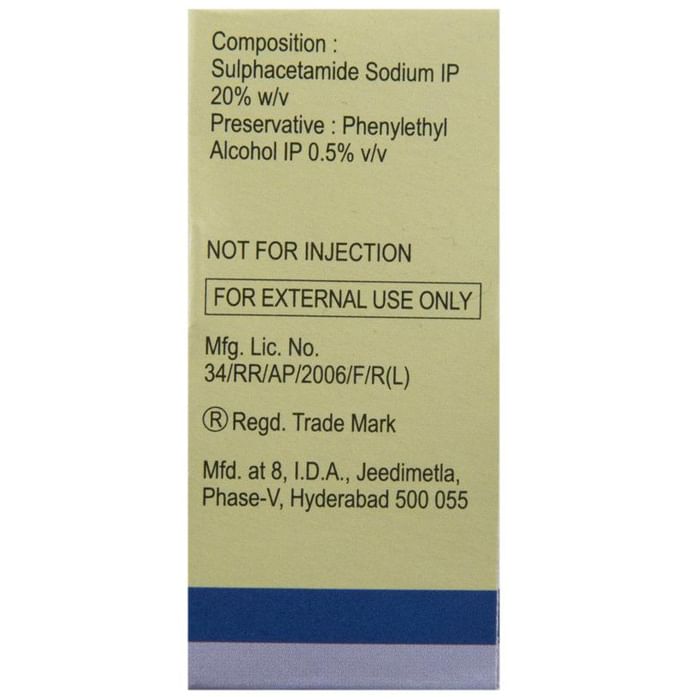Locula 20% Eye Drop is an antibiotic used to treat bacterial infections of the eye. It fights the infection by stopping the growth of bacteria. This helps to cure the underlying infection. Locula 20% Eye Drop should be used as directed by your doctor. It should be used regularly at evenly spaced time intervals as prescribed by your doctor. Do not skip any doses and finish the full course of treatment even if you feel better. Stopping the medicine too early may lead to the infection returning or worsening.It is effective in killing many types of bacteria. However, it will not work for other types of eye infections (e.g., viral) and therefore, should only be used if prescribed by your doctor. Unnecessary use of any antibiotic can lead to a decrease in its effectiveness in the future.Commonly seen side effects seen with this medicine include temporary eye irritation and stinging in the eyes after administration. Consult your doctor if these side effects persist or if your condition worsens. Seek emergency medical help if you get a rash, itchy skin, swelling of face and mouth, or have difficulty breathing. Contact lenses should not be worn while you are using this medicine or while you have a bacterial eye infection.
