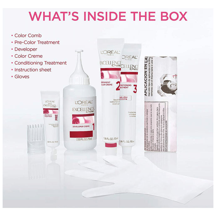 Loreal Paris New Look Excellence Creme Triple Protection Color 8 RB Reddish Blonde seals, replenishes, and conditions the hair for up to 8 weeks. It provides 100% grey hair coverage, even on stubborn greys. The non-drip creme formula makes it easy to use the colour and leave it on. The pre-colour treatment with ceramide protects and primes the hair for even colour results. The colour creme with Pro-Keratine complex wraps each fibre for even coverage. The conditioning treatment with collagen locks in colour for lasting radiance.