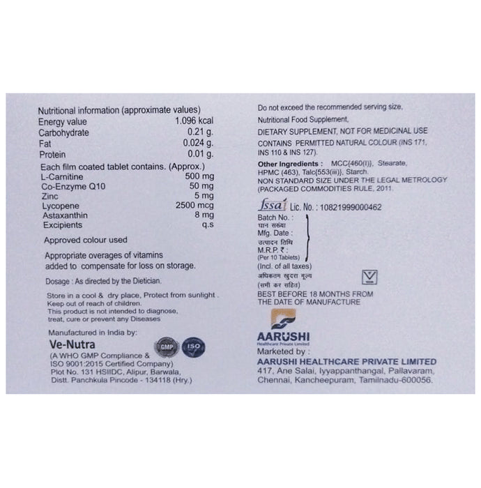 Composition : L-carnitine, Coenzyme Q10, Zinc, Lycopene, Astaxanthin