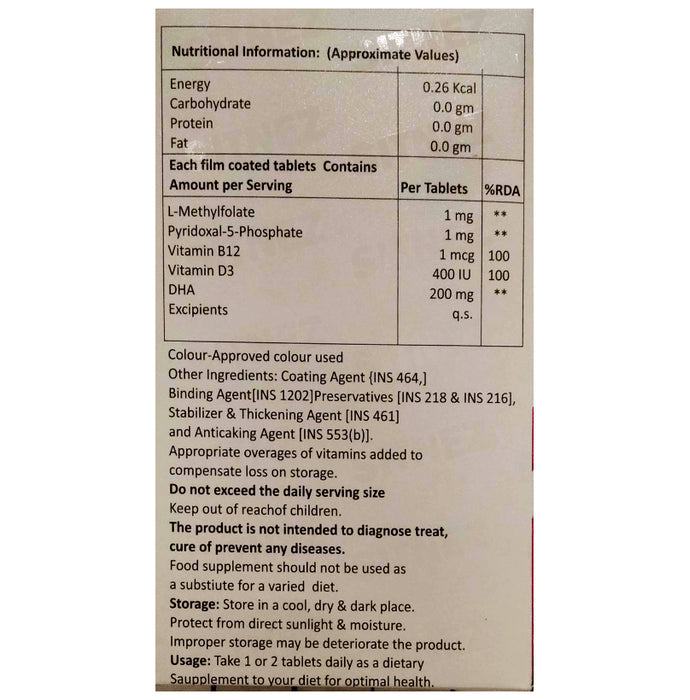 Composition : L-Methylfolate,Pyridoxal-5-Phosphate,Vitamin B12,Vitamin D3,DHA