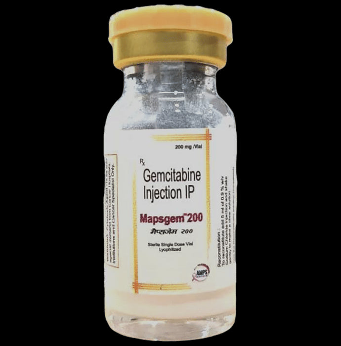 Mapsgem 200 Injection is used in the treatment of non-small cell lung cancer, breast cancer, pancreatic cancer, urinary bladder cancer, and ovarian cancer. Mapsgem 200 Injection is given as an injection by a qualified medical professional. Your doctor will decide what dose is necessary and how often you need to take it. This will depend on what you are being treated for and may change from time to time. You should take it exactly as your doctor has advised. Taking it in the wrong way or taking too much can cause very serious side effects. It may take several weeks or months for you to see or feel the benefits but do not stop taking it unless your doctor tells you to.The most common side effects of this medicine include nausea, vomiting, loss of appetite, hair loss and low blood platelets. This medicine may reduce the number of blood cells (decrease red blood and white blood cells) in your blood, thereby, increasing the susceptibility to infections. Regular blood tests are required to check your blood cells along with heart, liver, and blood uric acid levels.Before taking it, tell your doctor if you have heart disease, liver, or kidney problems or are taking any medicines to treat infections. Many other medicines can affect, or be affected by, this medicine so let your doctor know all medications you are using. This medicine is not recommended during pregnancy or while breastfeeding. The use of effective contraception by both males and females during treatment is important to avoid pregnancy.