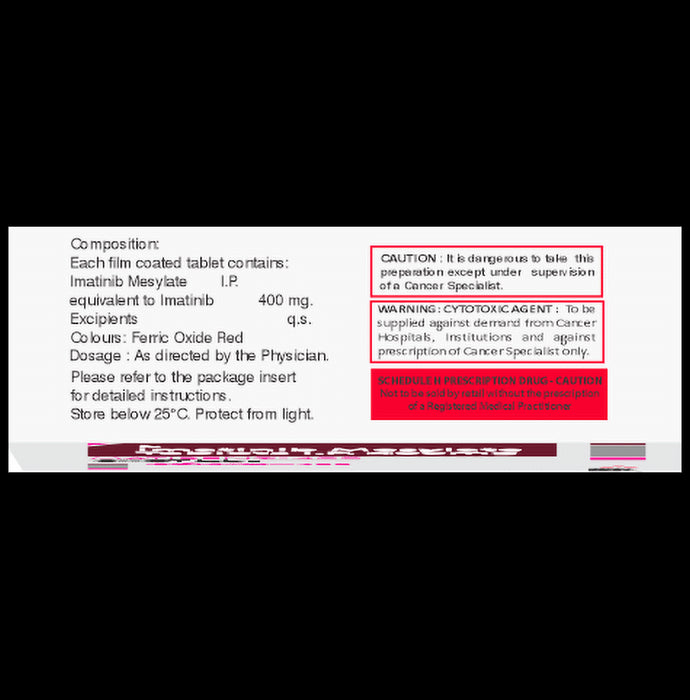 Matibenz 400 Tablet is used to treat several types of cancers. It is most commonly prescribed to treat blood cancers (chronic myeloid leukemia and acute lymphocytic leukemia) and gastrointestinal stromal tumors. It works by targeting specific proteins that contribute to the growth and spread of cancer cells. Matibenz 400 Tablet is also used for treatment of a skin tumor called dermatofibrosarcoma protuberans and a type of bone marrow condition called aggressive systemic mastocytosis. The medicine should be taken with food. Take it at the same time each day to get the most benefit. Continue taking it as long as your doctor advises for it. The duration of treatment varies according to your need and response to treatment. Taking it in the wrong way or taking too much can cause very serious side effects. It may take several weeks or months for you to see or feel the benefits but do not stop taking it unless your doctor tells you to.The most common side effects of this medicine include edema, nausea, vomiting, muscle cramps, musculoskeletal pain, diarrhea, rash, fatigue, and abdominal pain. Let your doctor know if you experience unexpected rapid weight gain. Your doctor may advise for regular monitoring of blood cells and liver function while you are taking this medicine. Do not drive or do anything requiring mental focus if you experience dizziness and blurry vision.Many other medicines can affect, or be affected by, this medicine so let your healthcare team know all medications you are using. This medicine is not recommended during pregnancy or while breastfeeding. The use of effective contraception by both males and females during treatment is important to avoid pregnancy.