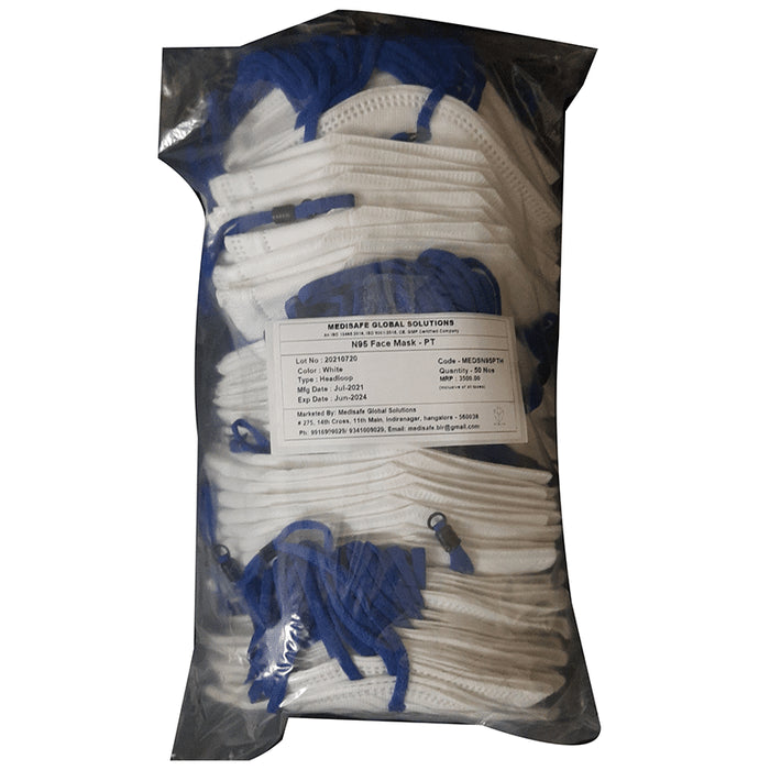 Medisafe N95 Face Mask with Headloop - PT is a set of 50 superior-quality, N95 masks to offer protection against germs, diseases and substances like PM10, PM2.5, vol, ozone, formaldehyde etc. They are safe, breathable and made of non-woven fabric to offer excellent protection.Uses:N95 masks find significant usage in hospitals, labs etc. They are especially useful for doctors and healthcare professionals.Product Specification and Features:Made of non-woven fabricOffers melt-blown filter to protect from dust, PM 10 etc.Safe and hypoallergenic materialMade according to strictest safety standardsDirections For Use:Use as directed on the label or as advised by your healthcare providerSafety Information:Read the label carefully before useStore in a cool and dry place away from direct sunlightKeep out of reach of children
