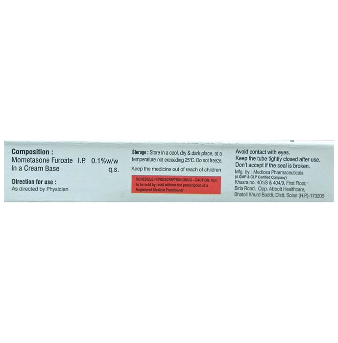 Momensa Cream is a steroid that is used to treat certain skin conditions such as eczema, psoriasis, dermatitis, and rash. It helps reduce symptoms like swelling, itching, and redness.You should always use Momensa Cream exactly as your doctor has told you. Do not use the cream or ointment for more than the recommended duration. Spread it as a thin layer onto the skin. Do not cover the area being treated with a bandage or plaster unless your doctor tells you to. You should use this medicine regularly but do not apply large amounts or use it for longer than prescribed. Tell your doctor if your condition does not improve after 2 weeks of treatment.Momensa Cream has a few potential side effects but not everyone will get them. These include inflammation and infection of hair follicle and burning, stinging, and itching senstation at the time of application. Let your doctor know in case you re worried or bothered by these side effects.Let your doctor know about any medical issues you have such as thinning of the skin, any skin infection, broken or ulcerated skin, diabetes, and immune system problems. Also, inform the doctor about other medicines you are taking (particularly steroids). Pregnant or breastfeeding women should consult their doctor before using this medicine.