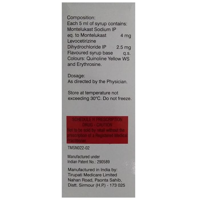 Composition : Levocetirizine (2.5mg/5ml) + Montelukast (4mg/5ml)