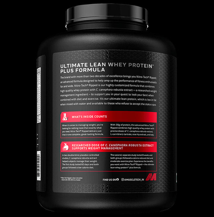 Muscletech Nitro Tech Ripped Powder Chocolate Fudge Brownie is a protein-rich supplement enriched with creatine and amino acids. It consists of proteins derived from whey protein isolate, which contains the highest portion of pure proteins. The rich ingredients can help in the development of your muscles.