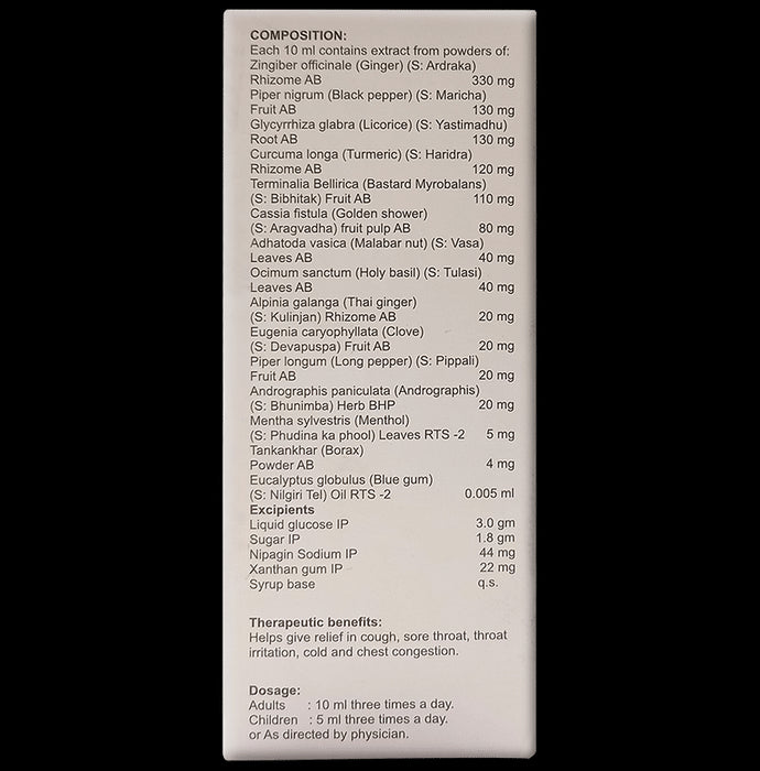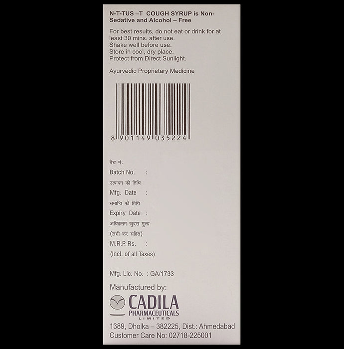 N-T-Tus -T Cough Syrup Menthol is an amalgamation of ingredients that work together to help treat cough. It is useful in treating feelng of hoarseness in the voice and relieves sore throat.