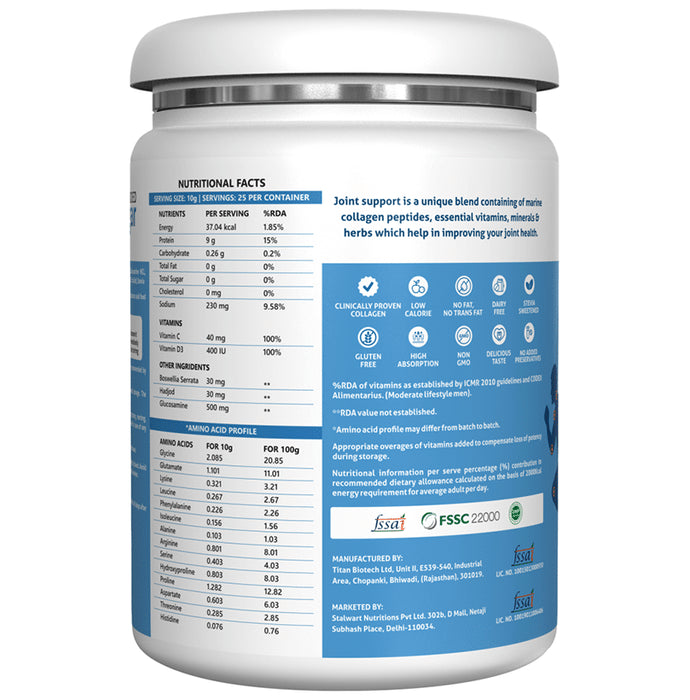 Composition : Collagen Peptide,Glucosamine HCL,Boswellia serrata,Hadjod(cissus quadrangularis L.) Vitamin-C,Vitamin D3,Citic acid