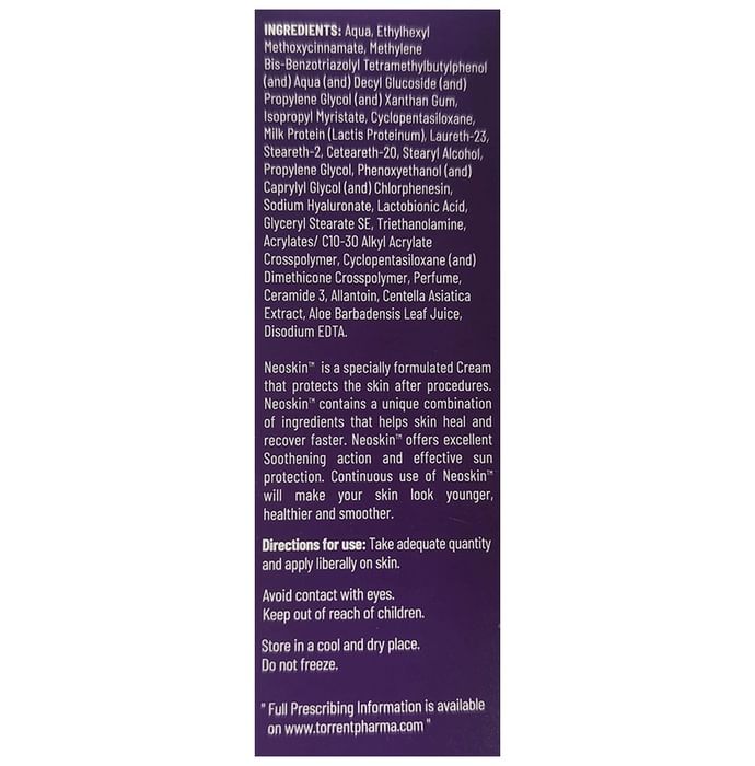 Neoskin Cream is a specially formulated cream that protects the skin after procedures. It contains a combination of ingredients that help the skin heal and recover faster. It offers soothing action and effective sun protection. Continuous use of the cream can help make the skin healthier and smoother.