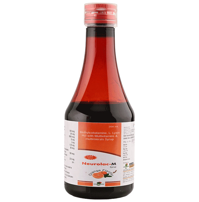 Neurolac-M Syrup Orange Sugar Free is a dietary supplement designed to provide essential nutrients that support overall health. This syrup combines the benefits of methylcobalamin (a form of vitamin B12), L-lysine, a range of vitamins, and essential minerals to address various nutritional needs.