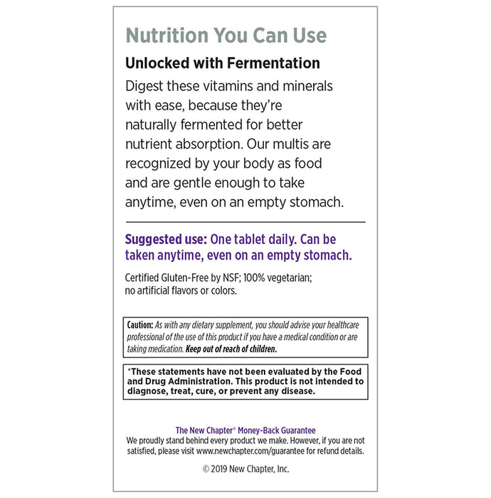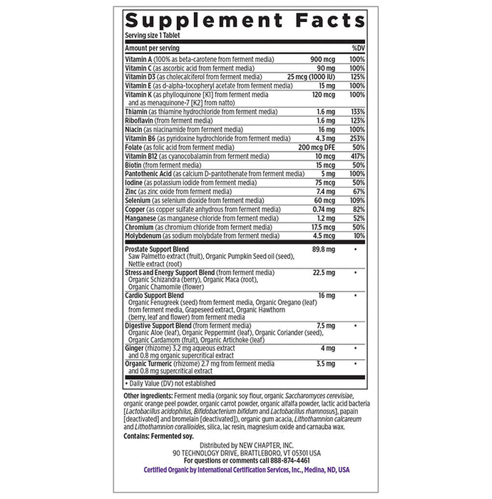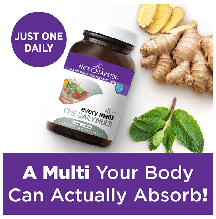 New Chapter 40+Every Man's One Daily Multi Vegetarian Tabletis a whole-food cultured multivitamin with nutrients that support prostate, heart and vision support. It contains ginger which provides digestive aid, and turmeric, which has potent anti-inflammatory properties. It is enriched with food foods and is easy to digest.