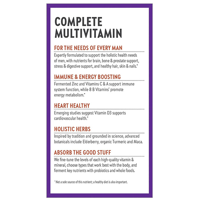 New Chapter Every Man's One Daily Multi Vegetarian Tablet is a potent, nutrient-diverse formula, made to help you tackle your to-do list and maximise energy, every moment. Multivitamins are used to provide vitamins that are not taken in through the diet. Multivitamins are also used to treat vitamin deficiencies (lack of vitamins) caused by illness, pregnancy, poor nutrition, digestive disorders, and many other conditions.