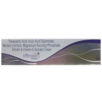 New Kromaglo Cream is a combination of six medicines. Tranexamic Acid is an anti-fibrinolytic. It protects the skin from UV radiation and reduces pigmentation. Kojic Acid is also an anti-pigmentation medicine. It works by suppressing the formation of melanin, a pigment that gives color to the skin. Arbutin is a natural skin lightening/whitening agent that reduces the production of melanin (skin pigment). Magnesium and Vitamin E provides essential nutrients. Mulberry extract is an antioxidant. It prevents premature aging and reduces wrinkles. This is how treats melasma.